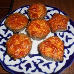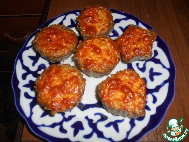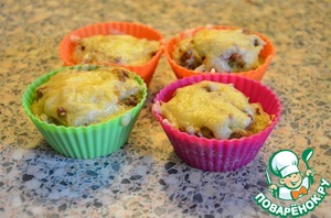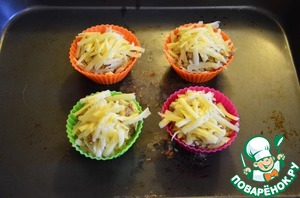 Разложить по формам, посыпать сыром, выпекать 180С 40 минут