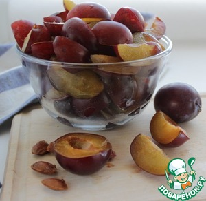 • Сливу вымыть, разрезать на половинки или на четвертинки, косточки удалить.