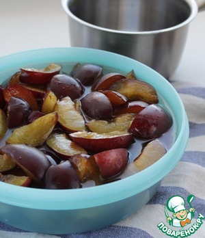 • Подготовленную сливу залить сахарным сиропом и выдержать в холодильнике на нижней полке в течение 2 суток.