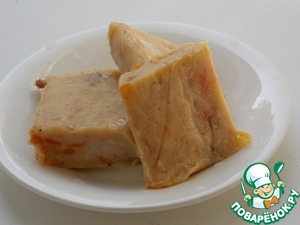 Форму застелить пленкой, выложить смесь, покрыть пленкой и остудить. Поставить в морозилку до застывания.