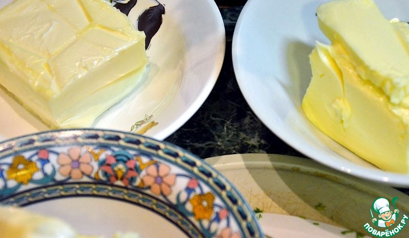 • Масло разделить на 3 части и согреть до комнатной температуры, чтобы его легко можно было размять вилкой.