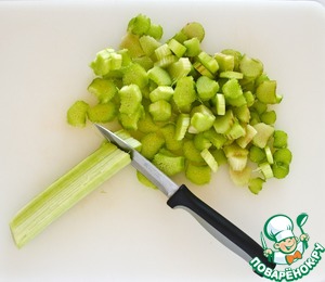 Добавить ревеневый компот, ещё раз всё хорошо перемешать и вылить начинку в форму.