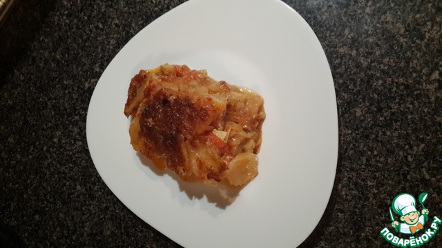 5. Когда овощи готовы, начинаем выкладывать слои в форму для запекания (у меня обычная чугунная сковорода).