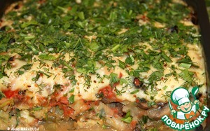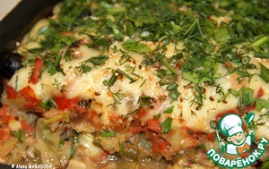 Посыпаем тертым сыром и ставим в духовой шкаф на 20 минут на 200ºС.