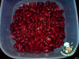• Из баночки с фасолью слить жидкость,