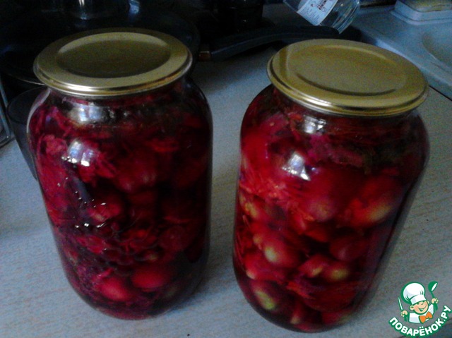 Все это перемешиваем и укладываем в банки слоями. Заливаем 1,5 л. теплой кипяченой воды. Через 2-2,5 суток можно есть. Если на зиму, то без аспирина и рассол прокипятить+ стерильные банки. Уверена, что понравится всем, кто попробует. Приятного аппетита! Для закуски самое то.