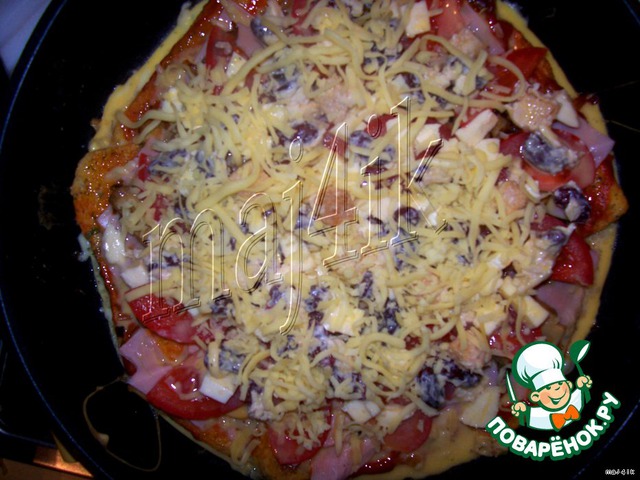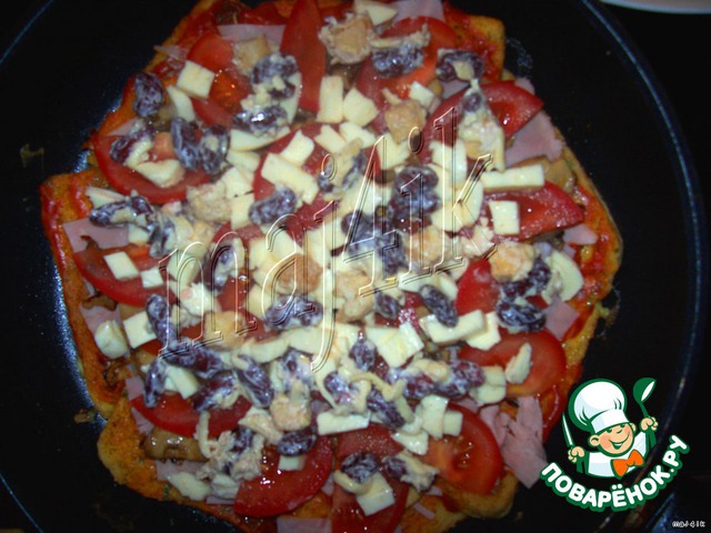 и под крышкой жарить на среднем огне около 10 минут - пока сыр полностью не расплавится.