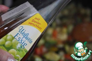 Наливаем уксус, перемешиваем и оставляем всё тушиться на медленном огне.