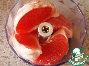 Измельчить и процедить сок грейпфрута через ситечко или марлю.
