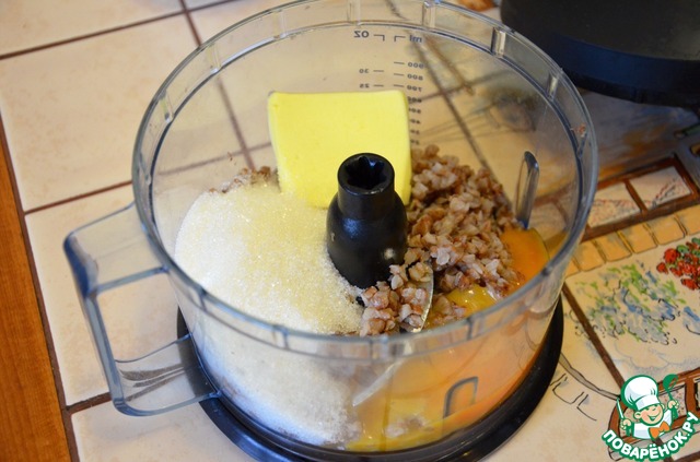Кашу перемалываем с маслом, желтками, сахаром.