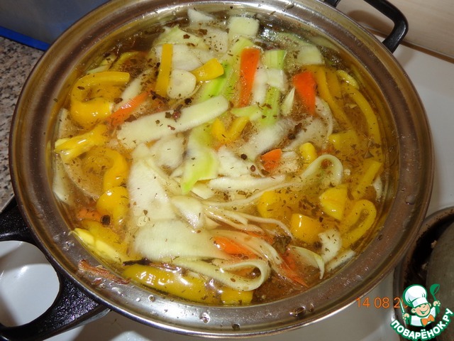 - Перец болгарский (у меня желтый крупный мясистый, можно больше-по вкусу) — 1 шт