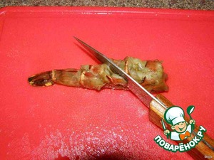 • чистим креветки, надрезаем наискосок, чтобы во время жарки не скрутились