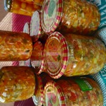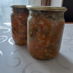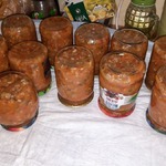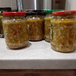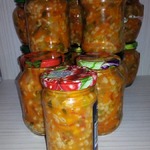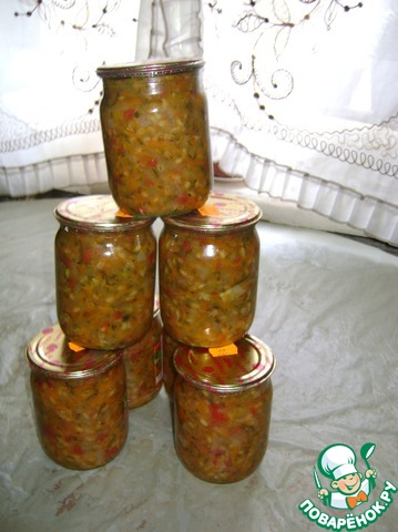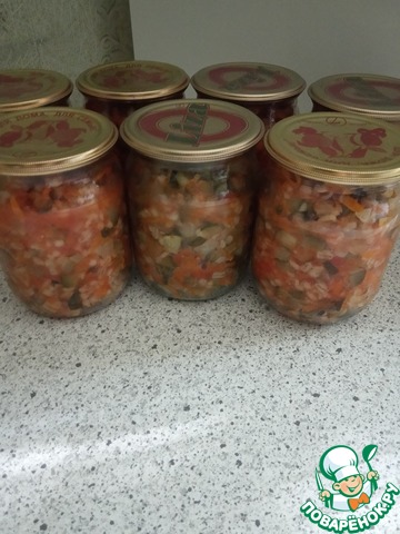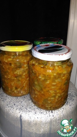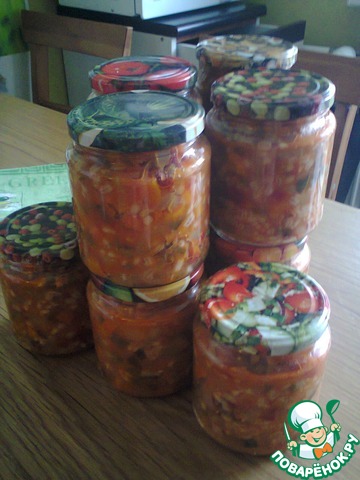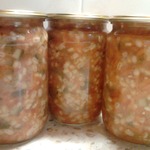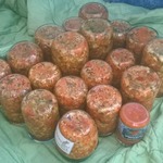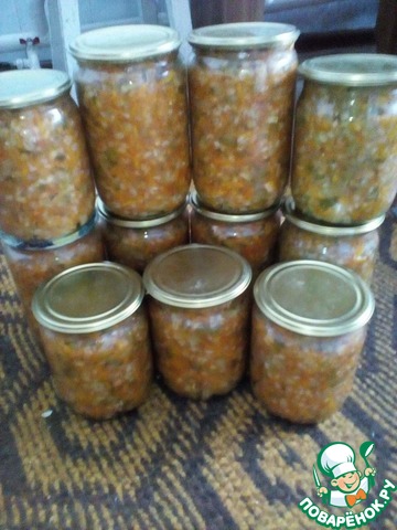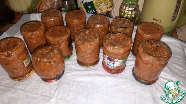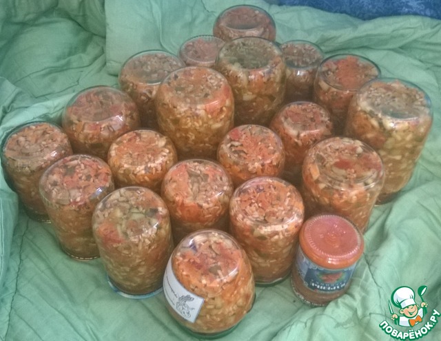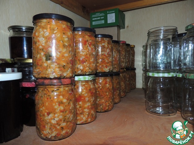 Из половины нормы получаются 6-7 пол-литровых баночек. Банки такой заготовки прекрасно хранятся в шкафу.