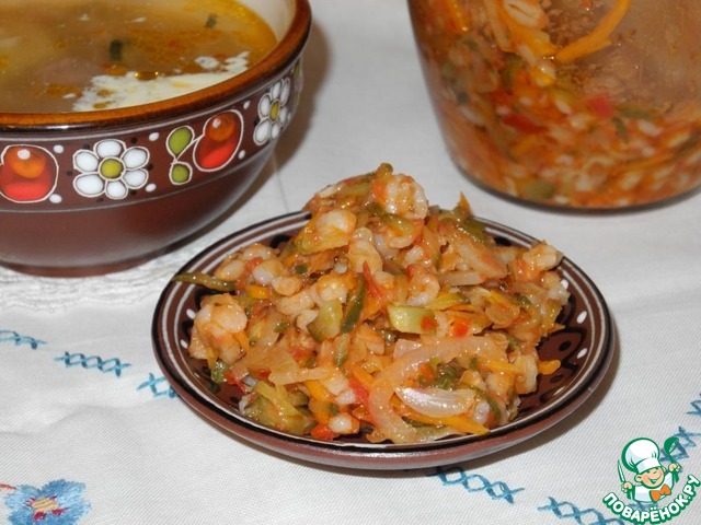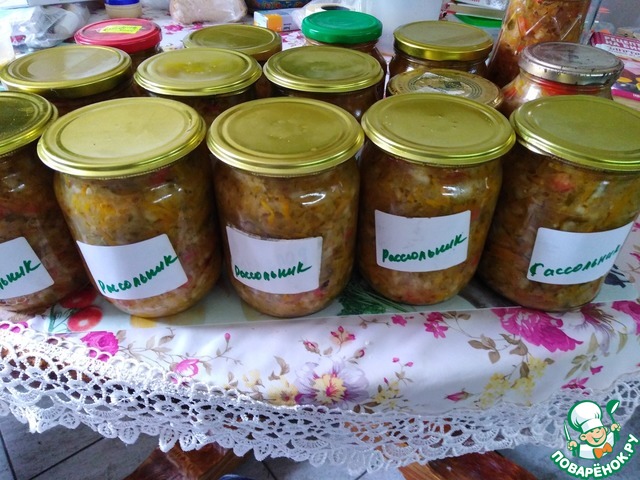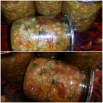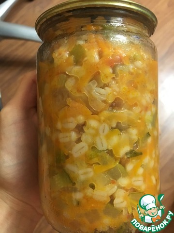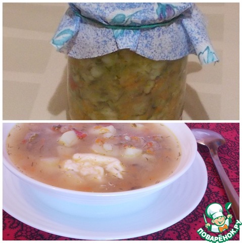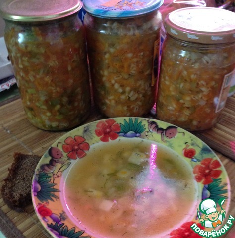 Предлагаю вам мой рецепт заготовки для рассольника. Наверно, у каждой из нас бывают такие моменты, когда необходимо срочно приготовить обед, а времени в обрез, в этом случае нам очень поможет заготовочка в банке. Этот вариант очень интересен тем, что ничего заранее не надо отваривать, обжаривать или замачивать, что значительно экономит наше время, а в составе рецепта только продукты, которые растут на ваших дачных участках. Сей замечательный рецепт, приехал ко мне из Белоруссии, как позже выяснилось, похожие рецепты есть на других сайтах, вот только способ приготовления у меня другой.