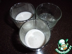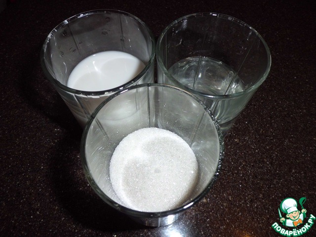 Кокосовое молоко смешиваем с водой и сахаром, ставим на плиту и доводим до кипения. Снимаем и остужаем прямо в этой же кастрюльке (я опускала в холодную воду, что бы процесс пошел быстрее)))