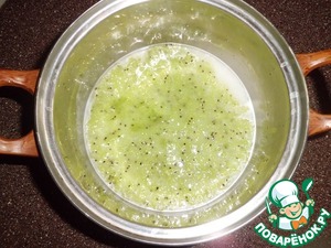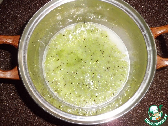 В остывший (не обязательно холодный - ок.20 градусов) сироп, добавляем киви и перемешиваем.