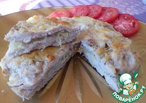 Во время запекания наша "растянутая" отбиванием индейка "собирается" обратно, тем самым превращаясь в единый пирог))) Как-то так)))