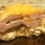 Закрываем нашу начинку второй порцией индейки. Солим, перчим.