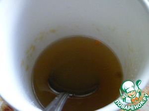 В горячем бульоне растворить желатин, если нужно, то прогреть до полного растворения, но не кипятить!