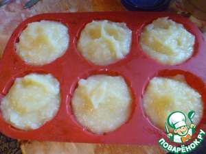 Силиконовые формочки смазать растительным маслом, выложить тыквенное пюре до половины.