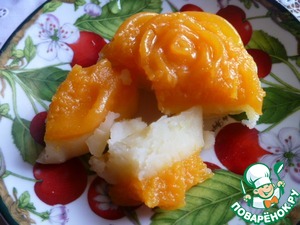 Очищенную тыкву порезать на кусочки и сварить на пару в течении 20 минут.