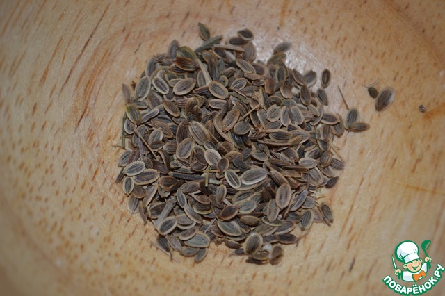 Добавить семена укропа в салат и заправить растительным маслом. Я использовала арахисовое нерафинированное.