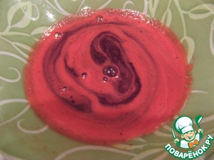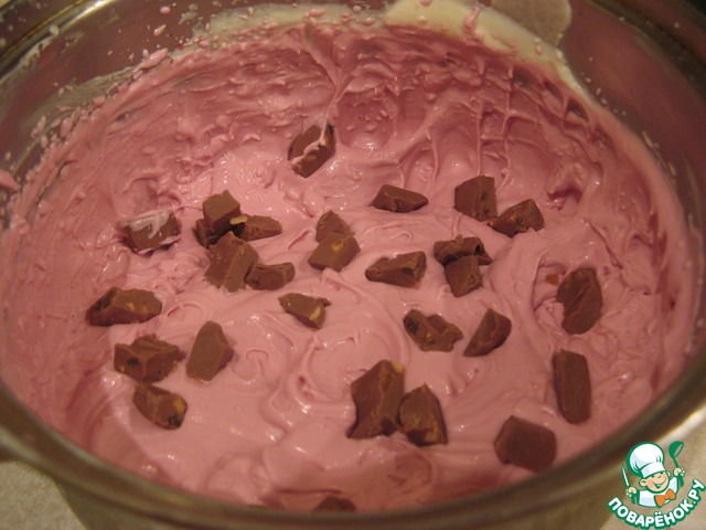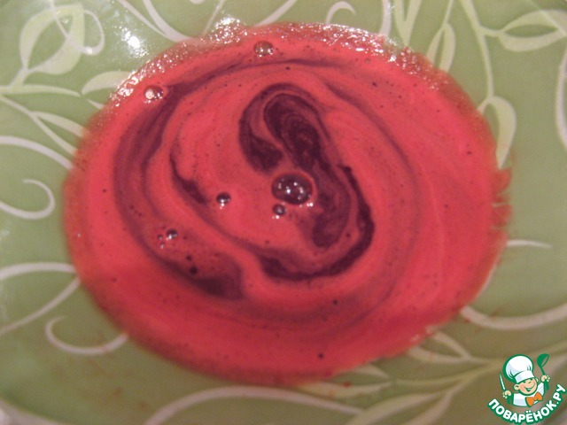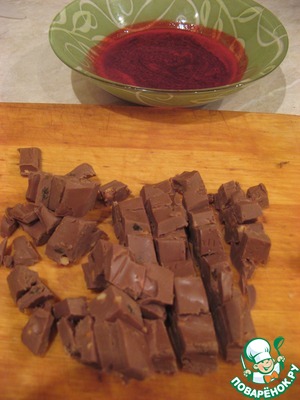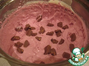 Смешиваем оставшуюся половину сливок с вишневым соком и шоколадом.