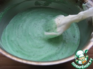 Добавить мятную массу в сливки, туда же мятный сироп для более яркого цвета. Перемешать.