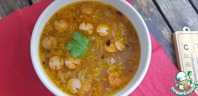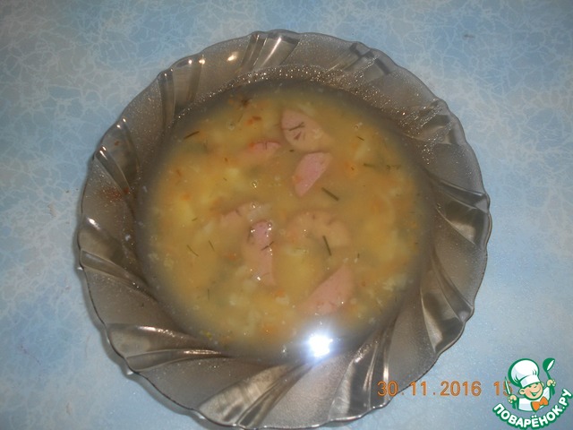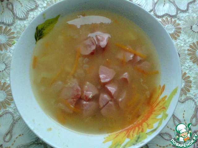 Рецепт «Суп гороховый с сосисками "Цветочки"»: