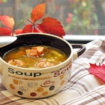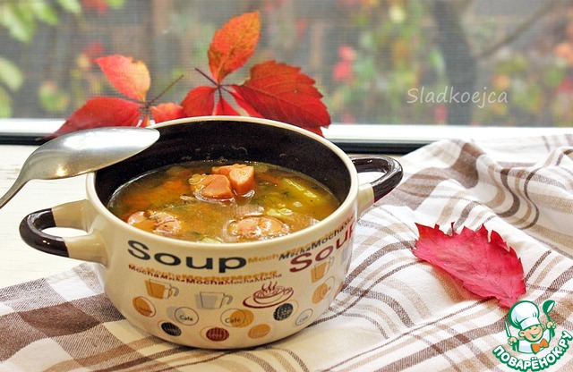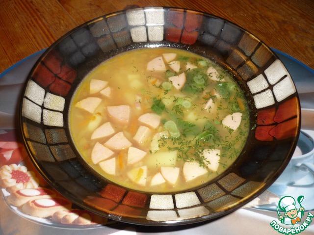Захотелось горохового супчика по-быстрому. Решила использовать сосиски. Получилось очень даже... А название - смотрите фото.
