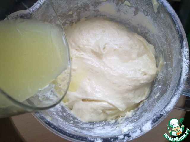 Добавить свежевыжатый лимонный сок и цедру в тесто. Тесто перемешать.