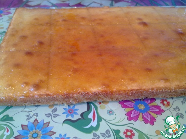 Готовое тесто выложить в смазанную форму и разровнять. Выпекать в течении 30 минут, при температуре 180 градусов.