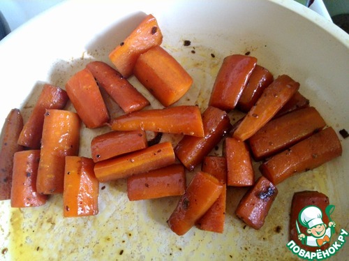 • Сковороду разогреть добавить все ингредиенты кроме моркови, дождитесь пока растает сахар.