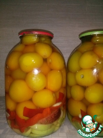 Вот такие помидорки у меня получились. Вкусные, ароматные, кисло-сладенькие... А яблочки и чесночок в это маринаде - это вообще отдельная песня, достойная оваций.