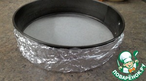 Форму предварительно застелить пергаментной бумагой и обвернуть ее фольгой.