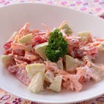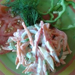 Салат заправить низкокалорийным йогуртом (3-4 столовые ложки) и посыпать нарезанным укропом.