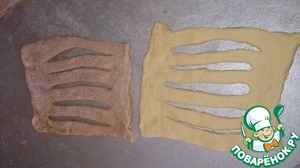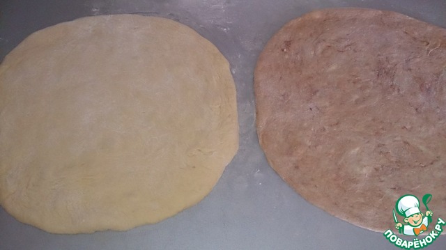 Замешиваем из данных ингредиентов тесто, разделив на две части. В одну часть добавляем какао.