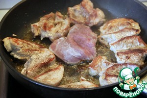 Готовое мясо выложить на тарелку и накрыть фольгой (в чугунок с крышкой), пока поджаривается вторая порция и идут др. подготовительные работы. -