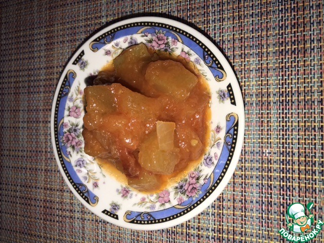 Все перемешиваешь, доводишь до кипения и закидываешь нарезанные кабачки. Варить надо 40 минут периодически помешивая