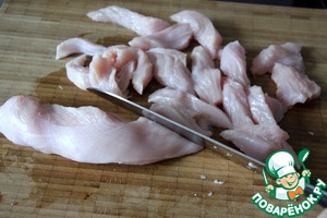 Если до вас мясник не превратил мясо в обрезки, то... придется заняться этим искусством: разрезать кусок помытого, обсушенного куска мяса вдоль, а потом тонкими кусочками поперёк, как на бефстроганоФФ.