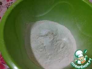 Смешать муку, крахмал и разрыхлитель, просеять.