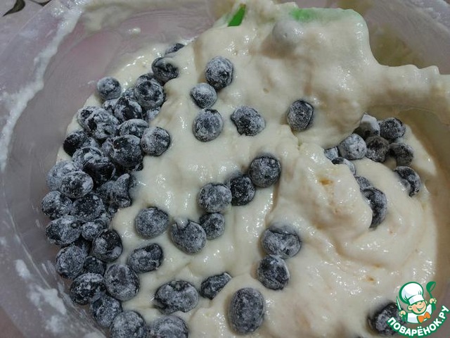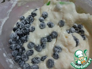 Его нужно перемешать с небольшим количеством муки, чтобы он затем более равномерно распределился в кексе. Смешать с тестом.