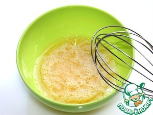 А в это время взбиваем яйцо с мал. щепоткой соли и добавляем растительное масло. Еще раз хорошо размешиваем.