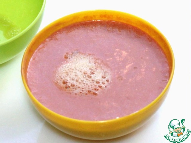 Из помидор выжать сок 200 мл. Смешать томатный сок со сметаной,