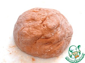 Рабочую поверхность присыпать мукой, раскатать тесто толщиной примерно 0,8 см.