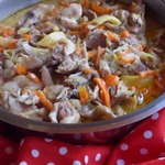 На той же сковороде припустить морковь и лук до прозрачности. Добавить свежий лимон, разрезанный на четверти и соленый лимон, который я готовлю по этому рецепту - http://www.povarenok .ru/recipes/show/406 15/ (убрать пробелы в ссылке). Добавить курицу, болгарский перец, бульон, посолить, поперчить, перемешать. Накрыть крышкой и тушить на маленьком огне 45 минут, если у Вас целая курица и 20 минут, если - только куриные грудки.