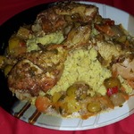 За 10 минут до конца приготовления добавить оливки. При подаче можно посыпать рубленым свежим кориандром. А на гарнир я подала кус кус.