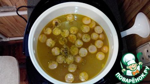 Добавляем 2-2,5 л воды, в зависимости от того, какой густоты суп вам нравится. У меня 2,5 л, в самый раз;) Добавляем соль и специи по вкусу, также можно добавить зелень