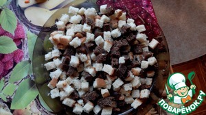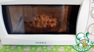 Достаем сухарики. Если у вас нет микроволновки, можно приготовить сухарики на сковороде, предварительно растопив немного сливочного масла и обжаривать около 10 минут