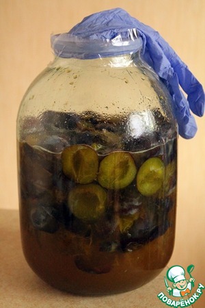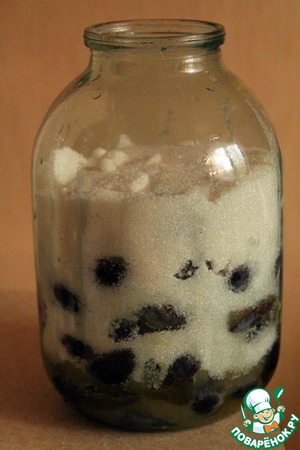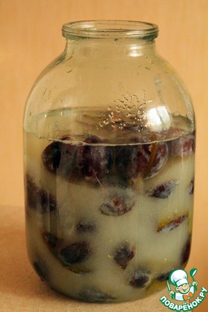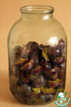 затем сливы пересыпать в 3 л. банку, чтобы поместились остальные ингредиенты